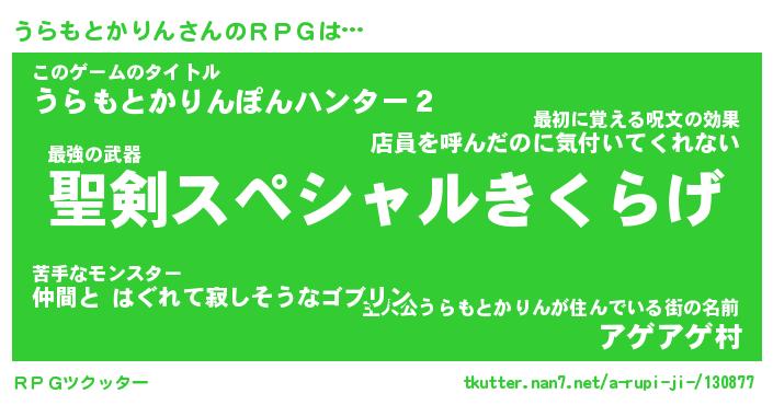 | ヒーロー風カッコイイあだ名 | 『スーパーウラモトカリン』 |