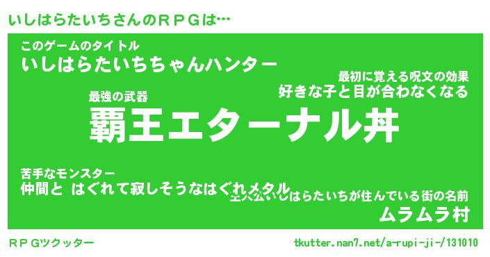 | 伝説のあだ名 | 『封印されし傭兵いしはらたいち』 |