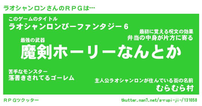 | 男性向けラノベタイトル風あだ名 | 『ラオシャンロンの憂鬱』 |