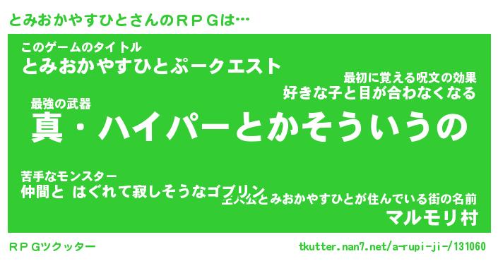 | 胡散臭い通販商品みたいなあだ名 | 『億万長者になれるブレスレット…その名も「とみおかやすひと」』 |