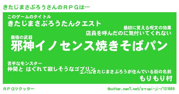 | 男性向けラノベタイトル風あだ名 | 『キタジマサブロウアートオンライン』 |