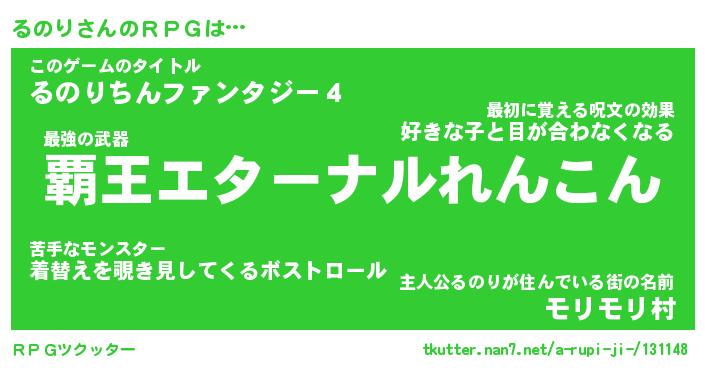 | 男性向けラノベタイトル風あだ名 | 『ルノリアートオンライン』 |