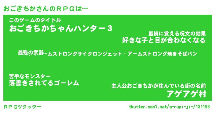 | ファンタジー風あだ名 | 『オゴフェル』『エターナルオゴキチカー』 |