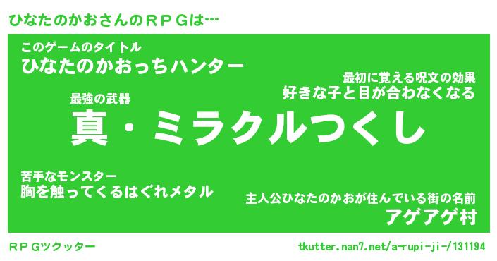 | ツイッター | ひなたのかおさんのツイッターID『namakemono_man』 |