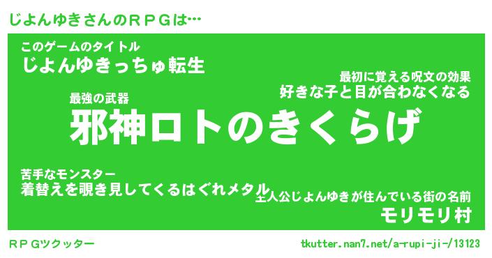 | 男性向けラノベタイトル風あだ名 | 『ジヨンユキアートオンライン』 |