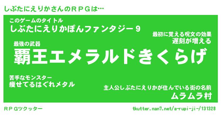 | 男性向けラノベタイトル風あだ名 | 『シブタニエリカアートオンライン』 |