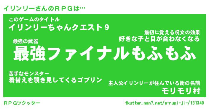 | ファンタジー風あだ名 | 『イリフェル』『エターナルイリンリーー』 |