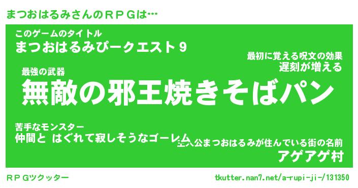 | ヒーロー風カッコイイあだ名 | 『スーパーマツオハルミ』『天弓騎士マツ』 |