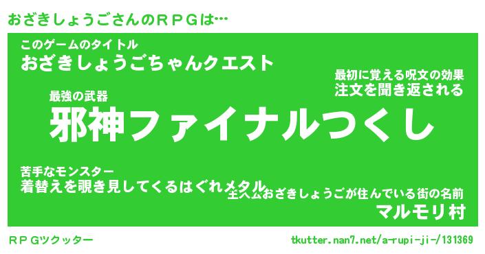| 男性向けラノベタイトル風あだ名 | 『オザキショウゴアートオンライン』 |