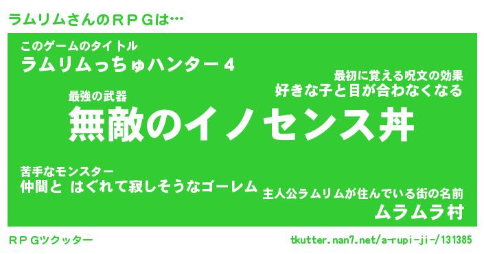 | ファンタジー風あだ名 | 『ラムフェル』『エターナルラムリムー』 |