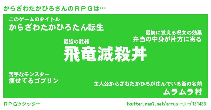 | 伝説のあだ名 | 『封印されしスナイパーからざわたかひろ』 |