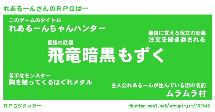 | 男性向けラノベタイトル風あだ名 | 『レアルーンアートオンライン』 |