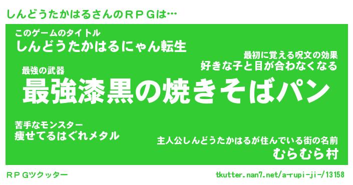| 胡散臭い通販商品みたいなあだ名 | 『モテモテ間違いなし霊験あらたかなお札…その名も「しんどうたかはる」』 |