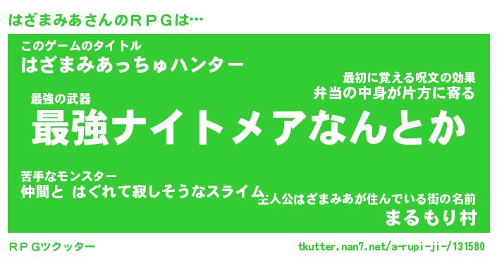 | 男性向けラノベタイトル風あだ名 | 『ハザマミアアートオンライン』 |