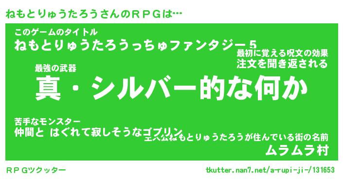 | 男性向けラノベタイトル風あだ名 | 『ネモトリュウタロウアートオンライン』 |