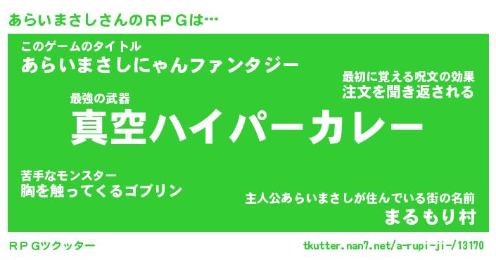 | 男性向けラノベタイトル風あだ名 | 『アライマサシアートオンライン』 |