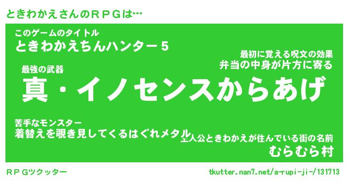 | ファンタジー風あだ名 | 『トキフェル』『エターナルトキワカエー』 |