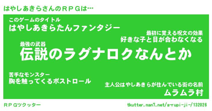 | ヒーロー風カッコイイあだ名 | 『スーパーハヤシアキラ』『幻影騎士ハヤ』 |