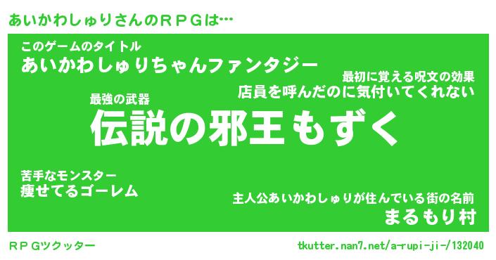 | 男性向けラノベタイトル風あだ名 | 『あいかわしゅりの憂鬱』 |