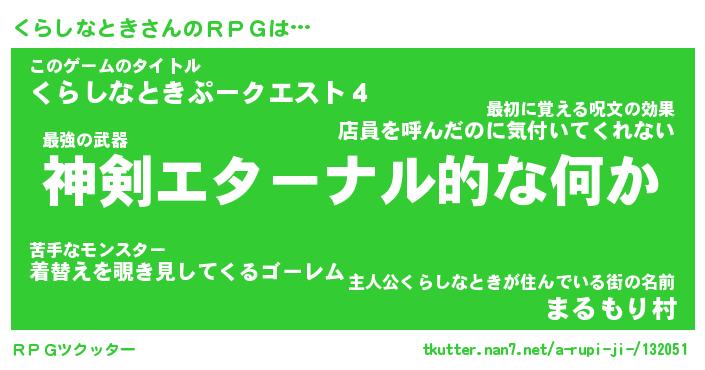 | 男性向けラノベタイトル風あだ名 | 『くらしなときの憂鬱』 |
