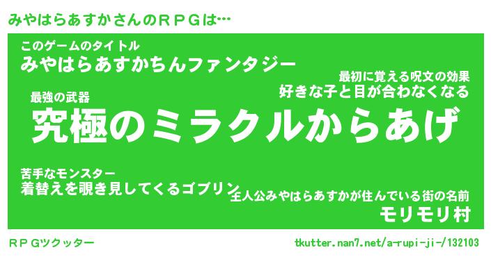 | ヘコむあだ名 | 『みやにー』『豆乳』『みや太郎』 |