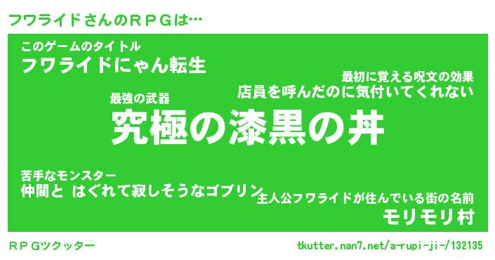 | 男性向けラノベタイトル風あだ名 | 『フワライドの憂鬱』 |