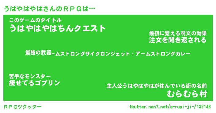 | 男性向けラノベタイトル風あだ名 | 『うはやはやはの憂鬱』 |