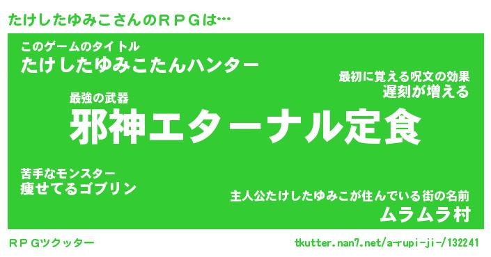 | 男性向けラノベタイトル風あだ名 | 『タケシタユミコアートオンライン』 |