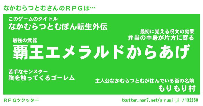 | ヒーロー風カッコイイあだ名 | 『スーパーナカムラツトム』 |