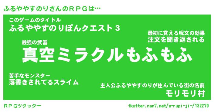| 胡散臭い通販商品みたいなあだ名 | 『億万長者になれるブレスレット…その名も「ふるややすのり」』 |