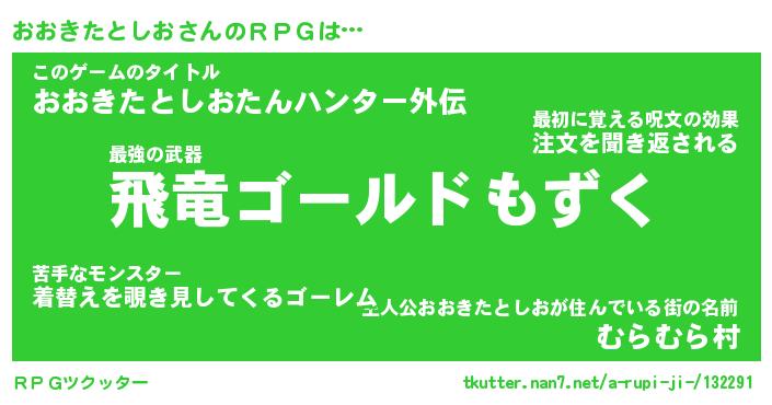 | 男性向けラノベタイトル風あだ名 | 『オオキタトシオアートオンライン』 |