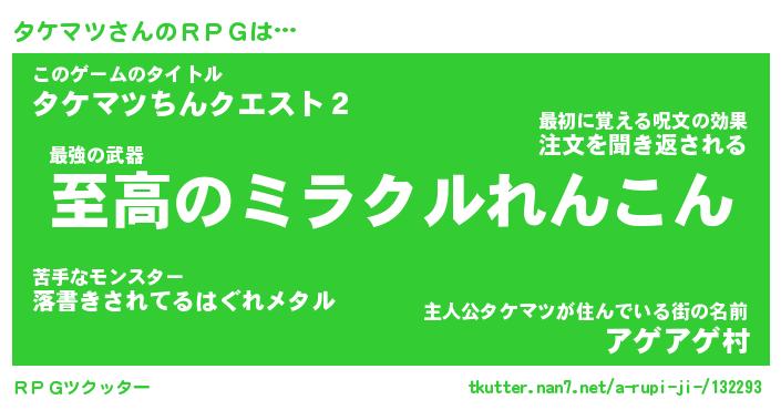 | 男性向けラノベタイトル風あだ名 | 『タケマツアートオンライン』 |