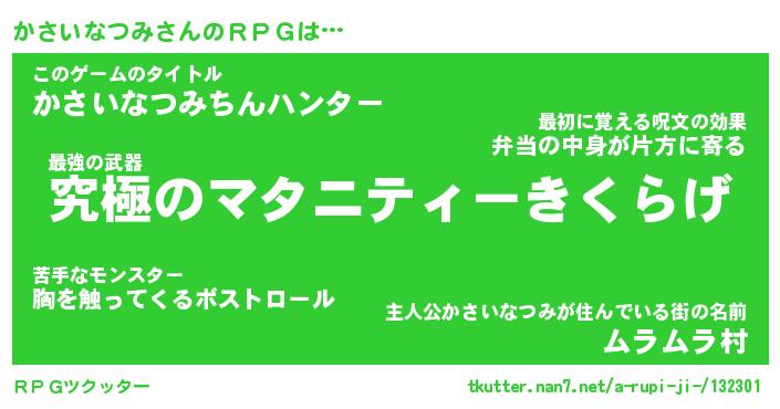 | 男性向けラノベタイトル風あだ名 | 『かさいなつみの憂鬱』 |