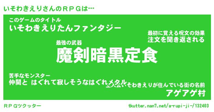 | 伝説のあだ名 | 『伝説の傭兵いそわきえり』 |