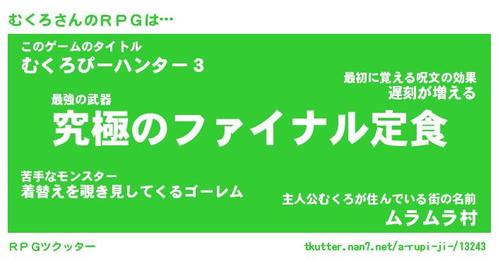 | ファンタジー風あだ名 | 『ムクフェル』『エターナルムクロー』 |