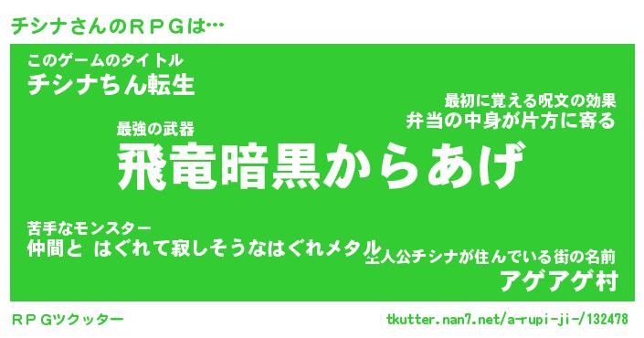 | 男性向けラノベタイトル風あだ名 | 『チシナアートオンライン』 |