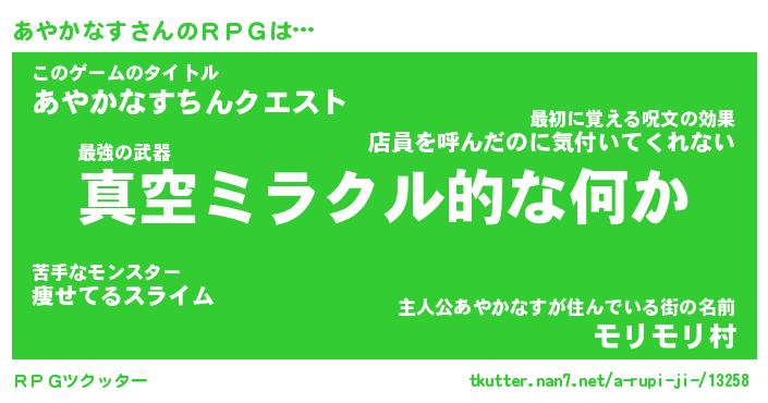 | 伝説のあだ名 | 『封印されし竜騎士あやかなす』 |