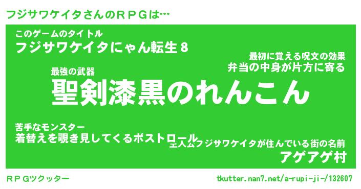 | 男性向けラノベタイトル風あだ名 | 『フジサワケイタの憂鬱』 |