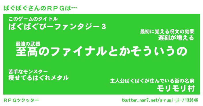 | ファンタジー風あだ名 | 『バグフェル』『エターナルバグバグー』 |