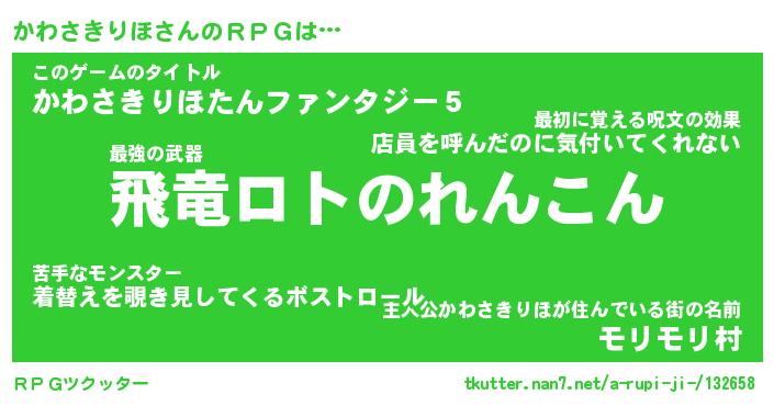 | ヒーロー風カッコイイあだ名 | 『スーパーカワサキリホ』『幻影騎士カワ』 |
