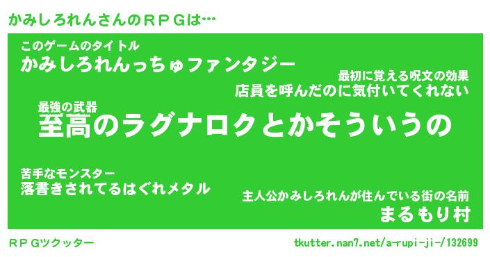 | 男性向けラノベタイトル風あだ名 | 『カミシロレンアートオンライン』 |