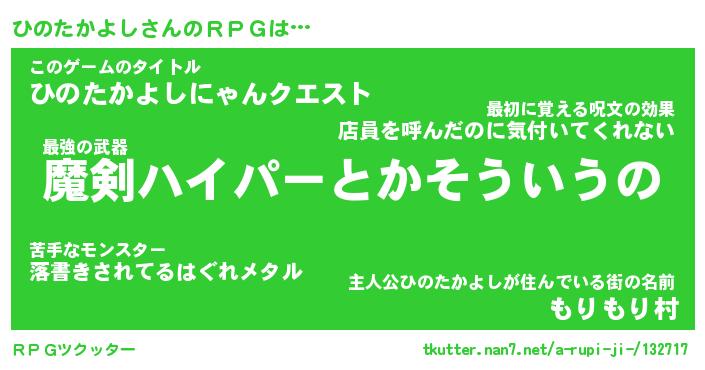 | 男性向けラノベタイトル風あだ名 | 『ひのたかよしの憂鬱』 |