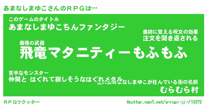 | 胡散臭い通販商品みたいなあだ名 | 『億万長者になれる霊験あらたかなお札…その名も「あまなしまゆこ」』 |