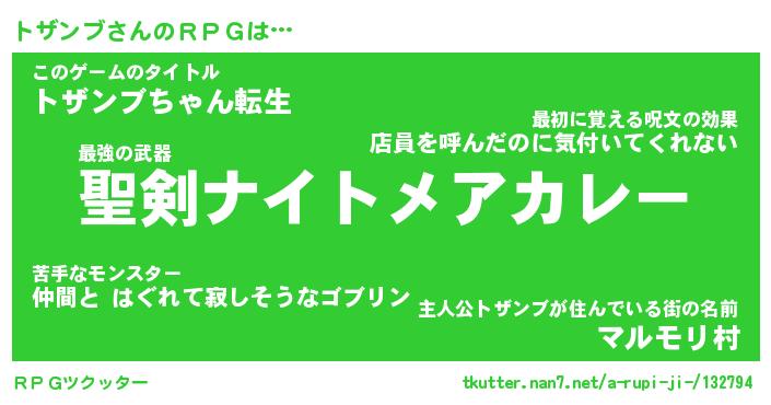 | 男性向けラノベタイトル風あだ名 | 『トザンブの憂鬱』 |