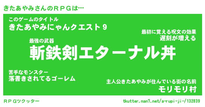 | ファンタジー風あだ名 | 『キタフェル』『エターナルキタアヤミー』 |