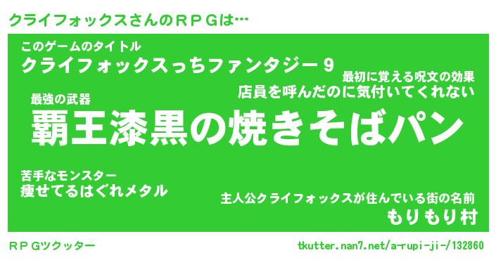 | 男性向けラノベタイトル風あだ名 | 『クライフォックスアートオンライン』 |
