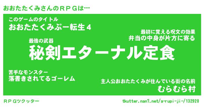 | 男性向けラノベタイトル風あだ名 | 『おおたたくみの憂鬱』 |