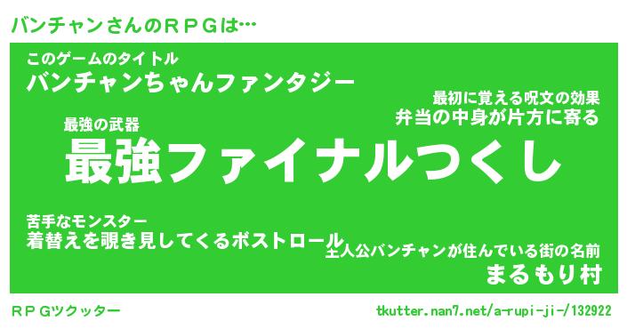 | ファンタジー風あだ名 | 『バンフェル』『エターナルバンチャンー』 |