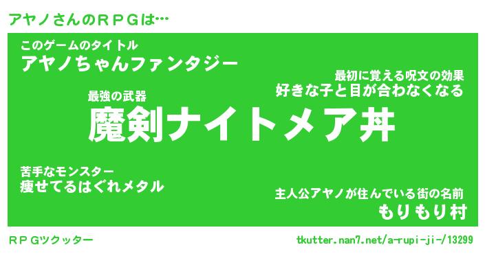 | ファンタジー風あだ名 | 『アヤフェル』『エターナルアヤノー』 |