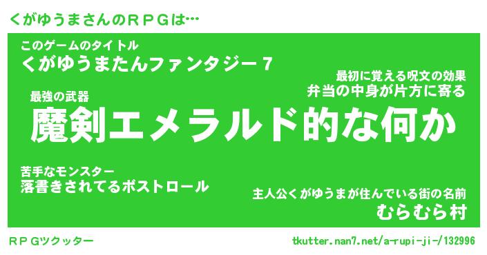 | ファンタジー風あだ名 | 『クガフェル』『エターナルクガユウマー』 |